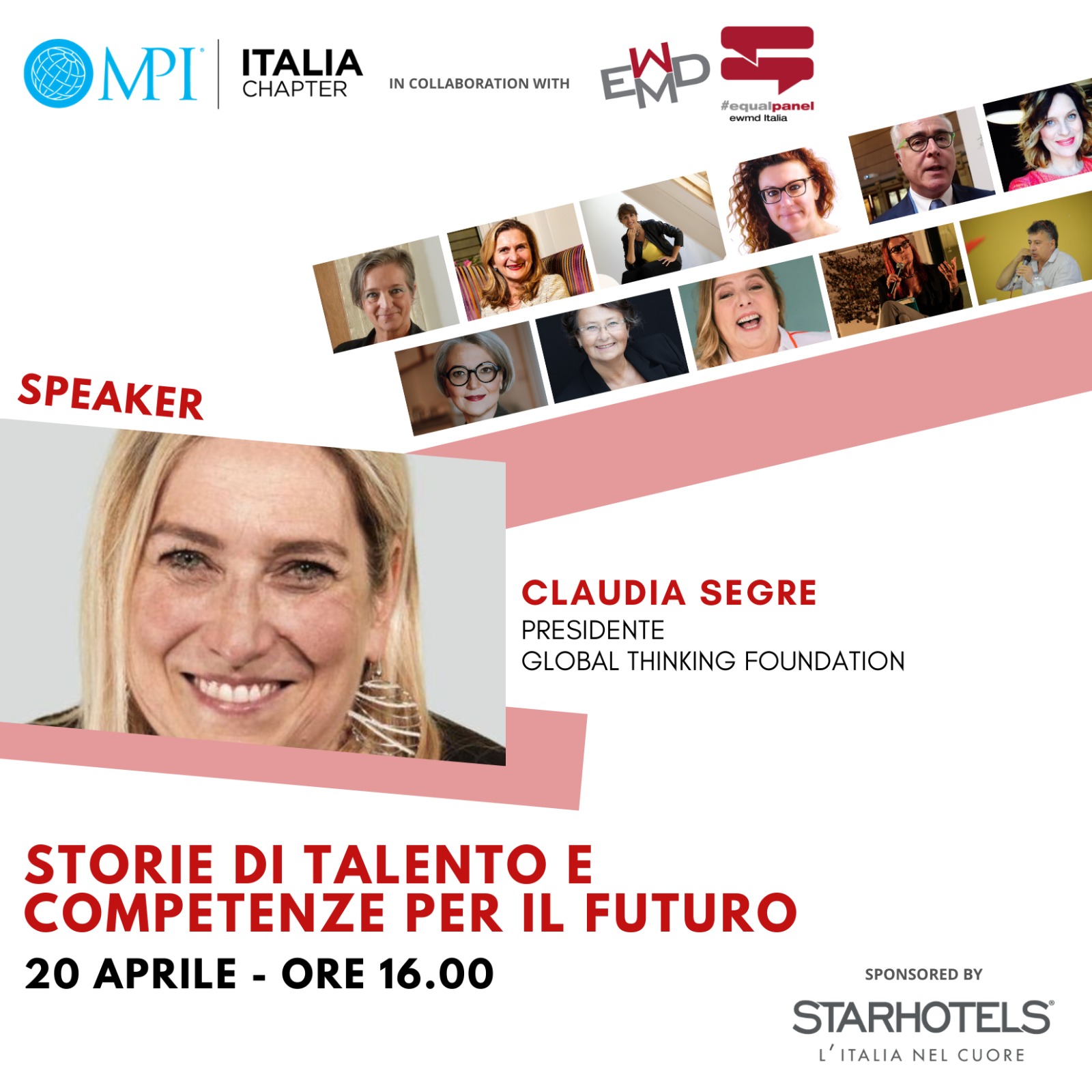 DigiTalk sulla leadership femminile. L'obiettivo dell'incontro è fornire nuovi spunti di riflessione e suggestioni per le donne protagoniste in un mercato del lavoro sempre più destrutturato, attraverso testimonianze di best practice ed esperienze di rinnovamento radicale. PROGRAMMA: -16.00 - Benvenuto di Maddalena Milone, Presidente MPI Italia Chapter -16.05 - Presentazione dell’indagine nazionale Turismo & Talenti 2020 | Giuseppe Giaccardi, Consulente di strategia, CEO di Studio Giaccardi e Associati. -16.15 - Intervista a: - Luisa Torsi, Professoressa Ordinaria di Chimica Università di Bari. - Claudia Segre, Presidente Global Thinking Foundation. - Stefano Ciccone, Founder Associazione “Maschile Plurale”. -16.35 - Presentazione Ricerca “Leaders of Transformation” | Angeles Moreno, Founder The Creative Dots. -16.40 - Presentazione di 3 Best Practice di rinnovamento professionale radicale al femminile: - Susanne Kosian, Co-founder visionhealth42. - Daniela Ballarini, Palazzo Camozzini di Verona e Presidente EWMD Verona. - Cristina Serafini, Co-Founder e Project Manager “Il Primo Corso Pratico di Employer Branding”. -17.00 - Presentazione Progetto “Un futuro da star per 10 donne manager” | Alessandra Bragoli, General Manager dell'Hotel Castille - Starhotels Collezione. -17.10 - Presentazione del Manifesto “equalpanel” | Daniela Bandera, Presidente EWMD European Women's Management Development. -17.15 - “Il superpotere della parola: una competenza per il futuro” | Vera Gheno, sociolinguista, docente universitaria, autrice e conduttrice. -17.30 - Conclusioni e saluti. -Modera: Annamaria Ferretti, Giornalista e direttrice di Ilikepuglia. -Registratevi gratuitamente su Eventbrite al seguente link: https://www.eventbrite.it/e/registrazione-storie-di-talento-e-competenze-per-il-futuro-150733089729