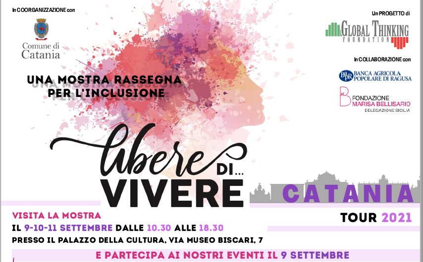 In collaborazione con: Banca Agricola Popolare di Ragusa e Fondazione Marisa Bellisario Delegazione Sicilia, in co-organizzazione con il Comune di Catania. Visita la mostra il 9-10-11 settembre dalle 10:30 alle 18:30 presso il Palazzo della Cultura, in Via Museo Biscari 7, Catania. Partecipa ai nostri eventi il 9 settembre. ORE 16:30: Palazzo Biscari, Via Museo Biscari 10. DAL G7 AL G20: IL PIANO STRATEGICO PER LA PARITÁ DI GENERE IN ITALIA. -Saluti Istituzionali: - Dtt. SALVO POGLIESE, Sindaco Comune di Catania. - Dtt.ssa BARBARA MIRABELLA, Assessore Pubblica Istruzione, Attività e Beni Culturali, Pari Opportunità e Grandi Eventi, Comune di Catania. - Dtt. SAVERIA CONTINELLA, Direttore Generale Banca Agricola Popolare di Ragusa Modera. - Dtt.ssa JANINA LANDAU, Giornalista Class CNBC Intervengono. - Prof. TITO BOERI, Economista e Professore Ordinario Università Bocconi. - Dtt.ssa MAGDA BIANCO, Capo del Dipartimento Tutela della Clientela ed Educazione Finanziaria della Banca d'Italia. - Prof. MAURIZIO CARTA, Professore Ordinario, Senatore Accademico e Delegato del Rettore allo Sviluppo Territoriale, Università degli Studi di Palermo. - Dtt.ssa SIMONA CURCI, Head of Organisational Development & Compensation Ferrari SpA. - Dtt.ssa CLAUDIA SEGRE, Presidente GLT Foundation. ORE 19:00: Palazzo della Cultura, Via Museo Biscari, 7. VERSO UN'EQUITÁ DI CARICHI DI CURA PER LE FAMIGLIE ITALIANE Intervista con Prof.ssa ELENA BONETTI, Ministra per le Pari Opportunità e la Famiglia. ORE 20:00: Palazzo della Cultura, Via Museo Biscari, 7. SPETTACOLO TEATRALE: "LIBERTÁ INVISIBILE" di e con Luca Vullo. L'ingresso alla mostra e la partecipazione agli eventi è gratuita. Per partecipare agli eventi serali è necessario registrarsi sul sito: www.liberedivivere.com/tappe/ Puoi anche seguire gli eventi sulle nostre pagine social: -FACEBOOK https://www.facebook.com/GlobalThinkingFoundation -INSTAGRAM https://www.instagram.com/globalthinkingfoundation/ -YOUTUBE https://www.youtube.com/channel/UCDNBF4vXJH618xaFlqdyYhw