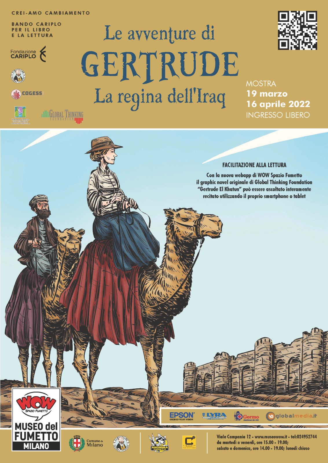 Global Thinking Foundation inaugura a Milano la mostra “Le avventure di Gertrude” esponendo la graphic novel originale “Gertrude El Khatun”, realizzato da Nico Vassallo e Marcello Restaldi (Anonima Fumetti). Al centro della storia i temi della diversità e dell’inclusione, narrati attraverso l’incredibile vita di Gertrude Margaret Lowthian Bell, una straordinaria donna che ha saputo portare valori in grado di trasmettere ancora oggi insegnamenti fondamentali e senza tempo. La mostra fa parte del progetto "Crei-amo cambiamento", vincitore del bando "Per il libro e la lettura" della Fondazione Cariplo. All’inaugurazione di sabato 19 marzo alle ore 16:00 sarà presente Claudia Segre, Presidente e Fondatrice di Global Thinking Foundation. Ingresso libero. WOW Spazio Fumetto - Museo del Fumetto di Milano viale Campania 12. Orari: da martedì a venerdì 15:00-19:00; sabato e domenica 14:00-19:00; lunedì chiuso.