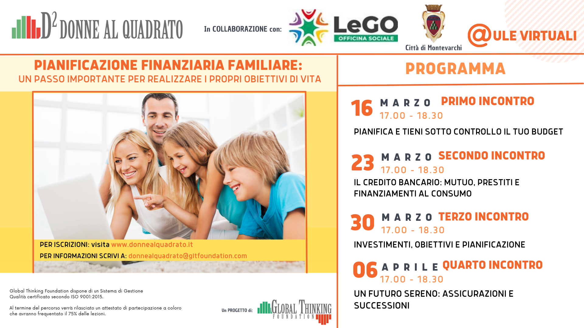 Un percorso di consapevolezza verso l’indipendenza economica che ha come obiettivo l’acquisizione di competenze economiche, finanziarie e patrimoniali di base, necessarie per una corretta gestione del bilancio familiare.
