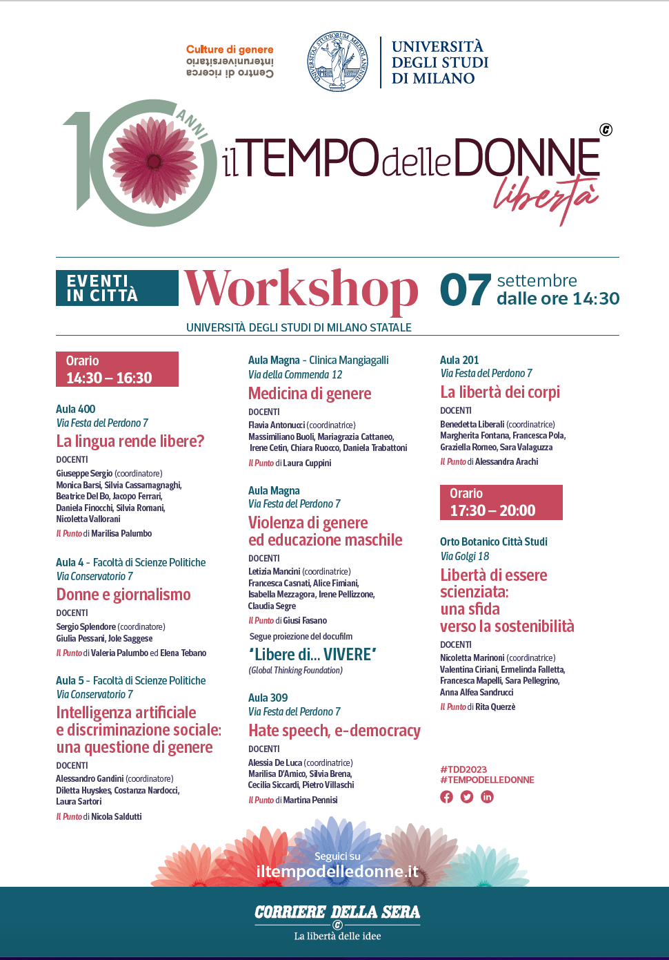 Per i 10 anni del Il Tempo Delle Donne, un workshop dai temi interessantissimi, tra cui la violenza di genere e la presentazione del nostro Docufilm "Libere di… VIVERE!". Maggiori informazioni in locandina.