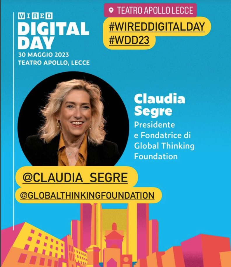 Il Wired Digital Day torna il 30 maggio al Teatro Apollo di Lecce, un’intera giornata alla scoperta del futuro. Sostenibilità, transizione energetica, manifattura 4.0, healthcare e aerospazio stanno cambiando le regole del mondo; chi guida il cambiamento racconterà come si costruisce una società rispettosa dell’ambiente, creativa e capace di guardare oltre i confini tradizionali. Tra gli Speaker, la Presidente di Global Thinking Foundation, Claudia Segre.