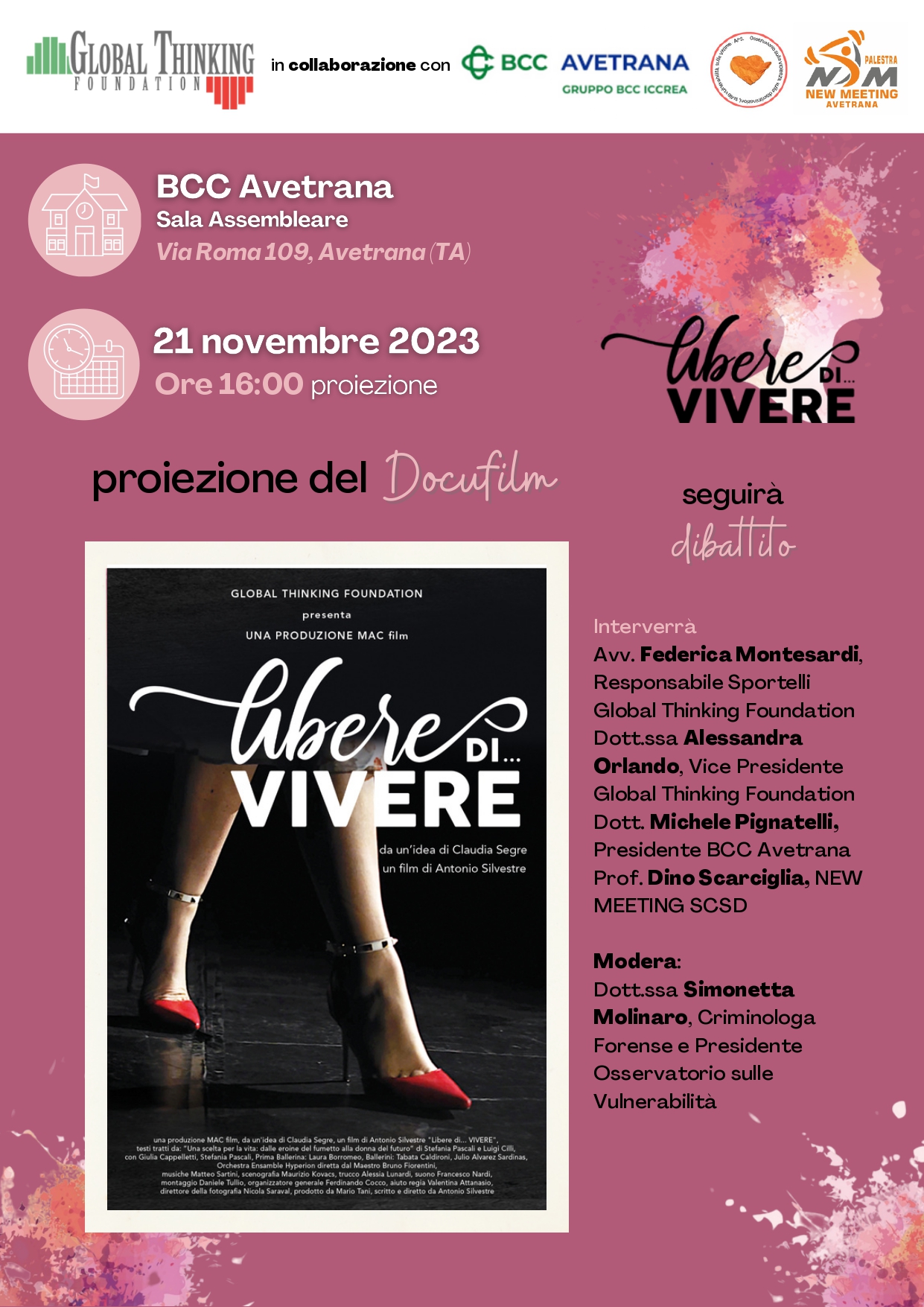 Vi invitiamo a Aventrana per la proiezione del docufilm "LIBERE DI ... VIVERE". Il nostro Docufilm sulla violenza economica e di genere. Al fine di sensibilizzare su questa annosa tematica.