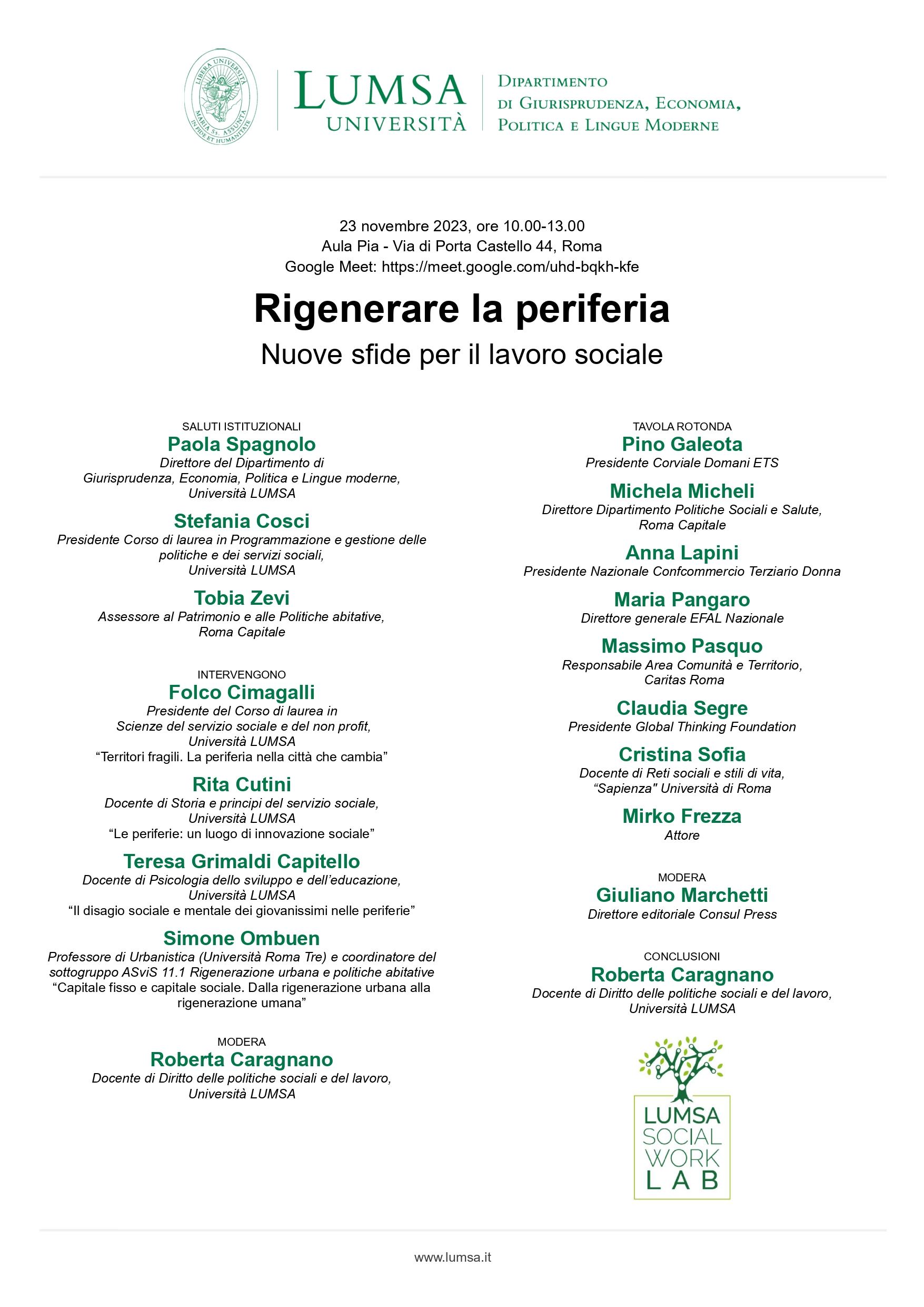 L'evento mira a fornire una visione completa del ruolo delle politiche sociali nelle periferie, supportando e promuovendo progetti di rinascita e rigenerazione, inclusa la dimensione culturale. Da qui nasce il legame con iniziative che generano occupazione sul territorio e con il tema del welfare culturale.