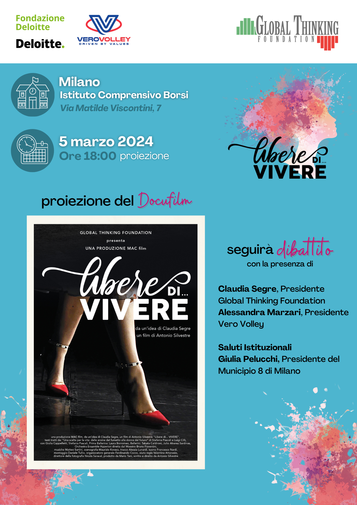 Seguirà dibattito con la presenza di Claudia Segre, Presidente Global Thinking Foundation, Alessandra Marzari, Presidente Vero Volley e saluti Istituzionali Giulia Pelucchi, Presidente del Municipio 8 di Milano.