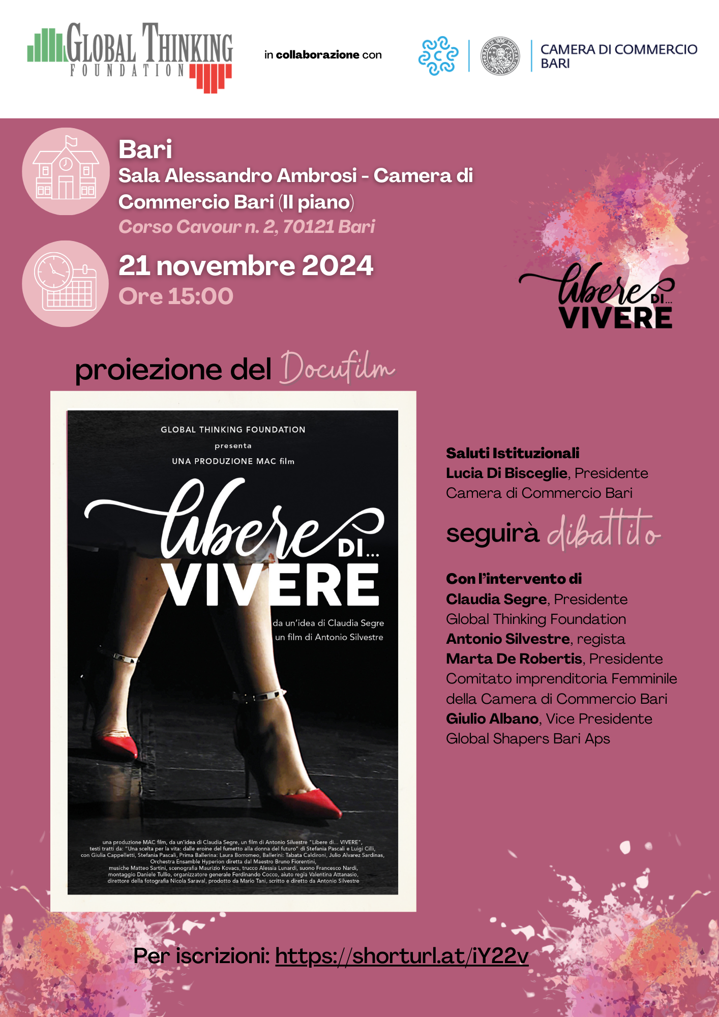 Proiezione del docufilm "Libere di... VIVERE" presso Camera di Commercio di Bari, per sensibilizzare sulla violenza economica di genere, seguita da un dibattito su questa tematica.