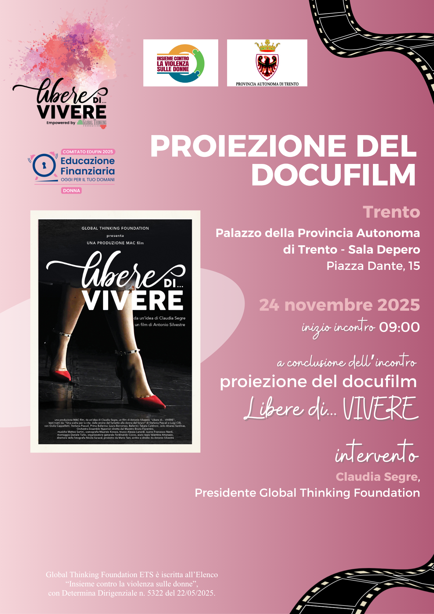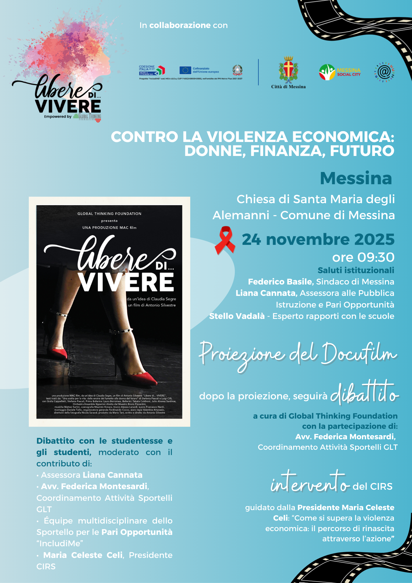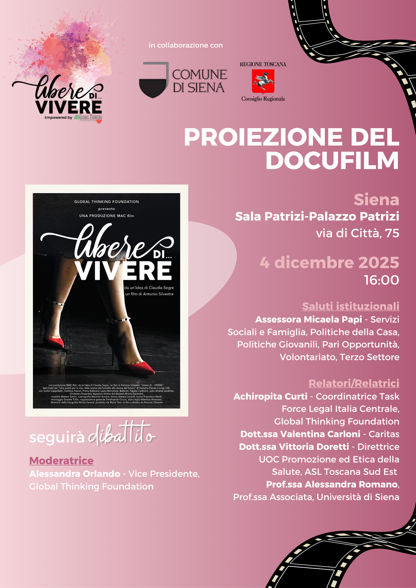 A Siena si terrà una proiezione aperta alla cittadinanza del docufilm “Libere di… VIVERE”, progetto di Global Thinking Foundation dedicato alla sensibilizzazione sulla violenza economica, con l’obiettivo di promuoverne la prevenzione e il contrasto.