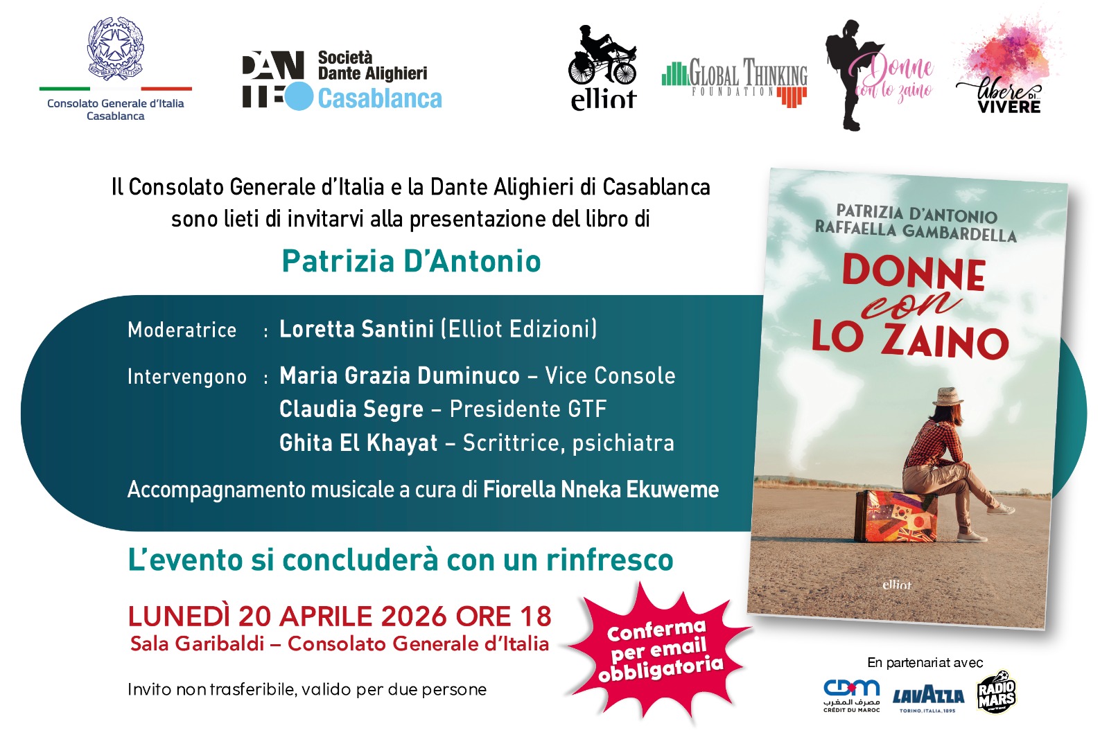 Siamo lieti di invitarvi alla presentazione del libro “Donne con lo zaino”. L’incontro vedrà la partecipazione di esponenti delle istituzioni, del mondo accademico e culturale, e offrirà un momento di riflessione e dialogo sui temi trattati nell’opera. L’evento sarà arricchito da un accompagnamento musicale dal vivo e si concluderà con un rinfresco.