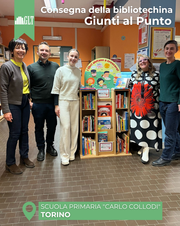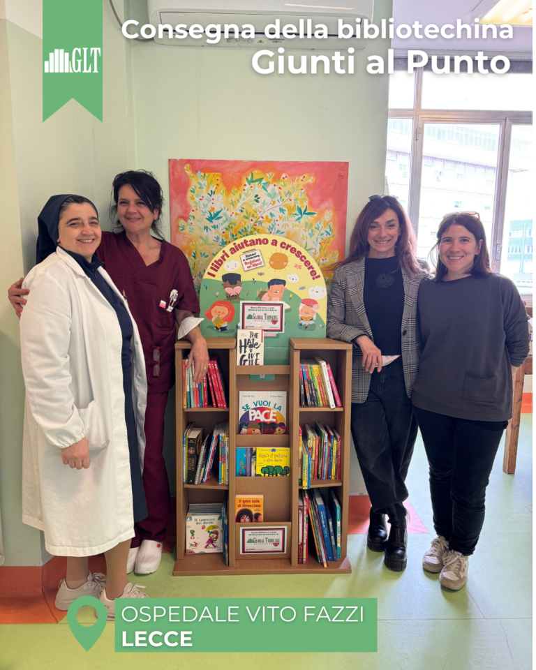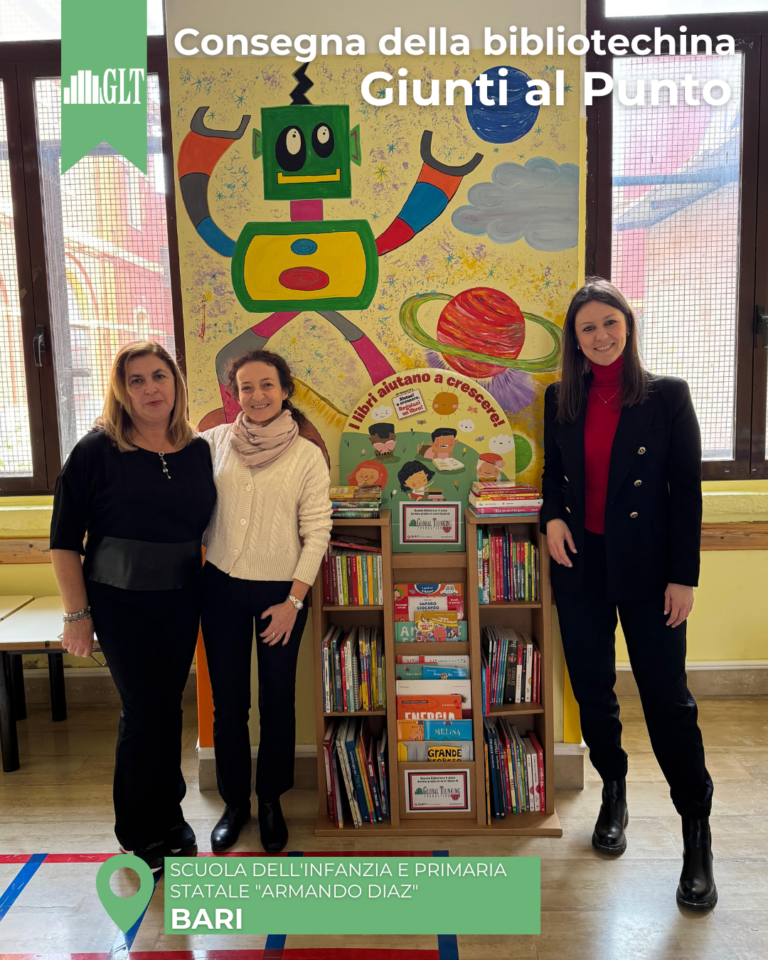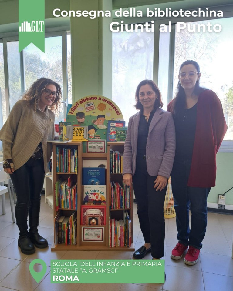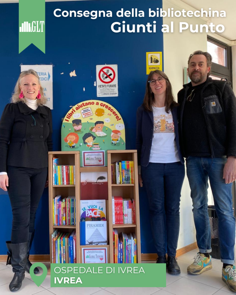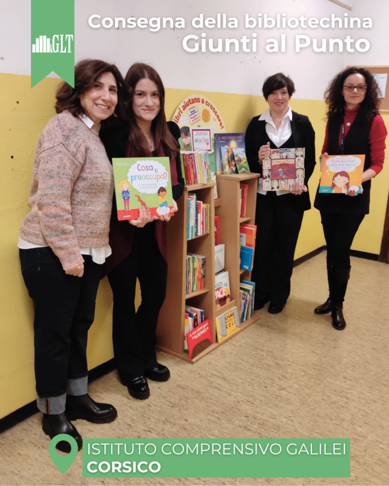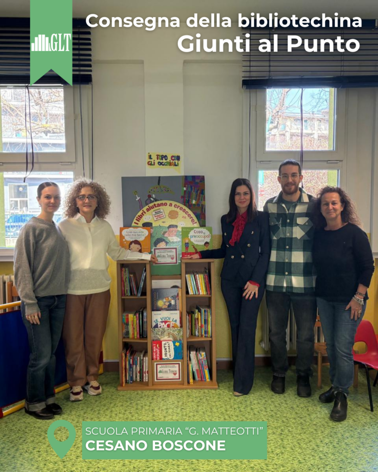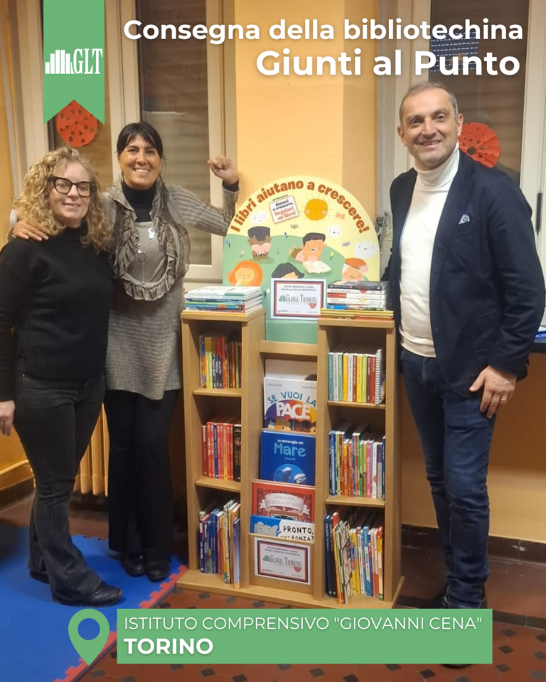 La prima delle 20 bibliotechine del progetto “Aiutaci a crescere, regalaci un libro” di GIUNTI al Punto, che Global Thinking Foundation supporta, è stata consegnata all’Istituto Comprensivo Statale “Giovanni XXIII – Moro” di Mesagne (BR), dall’Avv. Federica Montesardi, Coordinatrice Attività Sportelli GLT. Global Thinking Foundation ha contribuito a questa iniziativa che porta la lettura nelle scuole e nei reparti pediatrici degli ospedali, offrendo ai più piccoli nuove opportunità di crescita e conoscenza. Un momento speciale insieme a Salvatore Fiore, Prof. Dirigente Scolastico Istituto Comprensivo Statale “Giovanni XXIII- Moro” e alla Dott.ssa Anna Maria Scalera, Assessore Comune di Mesagne (Politiche Ambientali, Politiche Comunitarie, Rapporti Istituzionali, Cittadinanza Attiva e Partecipazione). Il progetto “Aiutaci a crescere, regalaci un libro” di GIUNTI al Punto, supportato da Global Thinking Foundation dona una bibliotechina all’ Associazione Siciliana Leucemie e Tumori dell’Infanzia. La consegna è avvenuta con la presenza di Martina Gangi, responsabile del progetto Focus Sud di Global Thinking Foundation, con la Direttrice dell’ASLTI Ilde Vulpetti, con la Dott.ssa Concetta Di Benedetto, Assistente Sociale Coordinatrice del Comune di Palermo e con il responsabile della sede “Giunti al Punto” di Palermo Centro, Luciano Napoli. Grazie alla donazione di Global Thinking Foundation della bibliotechina Giunti al Punto relativa al progetto “Aiutaci a crescere, regalaci un libro” è stato possibile ampliare la biblioteca dell’istituto Comprensivo “Galilei”. La consegna è avvenuta con la presenza di Nicoletta Guizzardi, Responsabile Segreteria Internazionale Global Thinking Foundation ETS, la Vicepreside Benedetta Rossi, la Professoressa Stefania Ramunno e la referente della Libreria Giunti al Punto di Rozzano, Daniela. Una nuova bibliotechina del progetto“Aiutaci a crescere, regalaci un libro” di GIUNTI al Punto, supportato da Global Thinking Foundation approda in una scuola di Treviso, la Scuola Elementare “Collodi”, tra l’entusiasmo e l’accoglienza dei bambini dell’istituto. Questa consegna è avvenuta con la presenza di Sabina Malagoli, Responsabile Eventi per Global Thinking Foundation, la Referente d’Istituto Maria Ingargiola, i docenti Marcon Silvia, Carrer Marilena, Ingargiola Maria e la Referente Giunti al Punto, Sara Bottari. La donazione della bibliotechina relativa al progetto “Aiutaci a crescere, regalaci un libro” di GIUNTI al Punto, all’interno della biblioteca scolastica della scuola primaria Carlo Collodi di Torino, ha contribuito ad arricchire lo spazio di lettura dedicato ai bambini. La consegna è avvenuta con la presenza di Arianna Sfondrini, Project Manager Comunicazione, Eventi & Social Management Global Thinking Foundation, la Dirigente Scolastica Antonella Loiotile, la Professoressa Antonella Gastone e i Referenti Giunti al Punto Francesca Baglioni e Alessandro Mendola. Grazie alla donazione di Global Thinking Foundation della bibliotechina Giunti al Punto relativa al progetto “Aiutaci a crescere, regalaci un libro” è stato possibile ampliare la biblioteca dell’Istituto Comprensivo “Giovanni Cena” di Torino. La consegna è avvenuta con la presenza di Claudia Piccinelli, Responsabile Progetto Donne al Quadrato Global Thinking Foundation, il Preside Luigi Piscopo e Cristina Miorin, Referente Giunti al Punto. La donazione della bibliotechina relativa al progetto “Aiutaci a crescere, regalaci un libro” di GIUNTI al Punto, all’interno dell’Ospedale “Vito Fazzi” di Lecce, ha contribuito ad arricchire lo spazio di lettura dedicato ai bambini in degenza. La consegna è avvenuta con la presenza della nostra Ambassador Carla Gloria, la Caposala Suor Alessandra Notaro, l’Infermiera Mina De Razza e la Referente Gunti al Punto Mara. Questa donazione ha fatto tappa in Campania, più precisamente nella scuola elementare Circolo Didattico “Eduardo De Filippo” di Santa Maria La Carità, in cui una nuova bibliotechina Giunti Al Punto, del progetto “Aiutaci a crescere, regalaci un libro” è stata installata per i bambini. La consegna è avvenuta con la presenza della nostra Volontaria Zaccaria Marnie e con le maestre Iolanda Visconti, Maria Carolina Sorrentino, Linda Nappi. Il progetto “Aiutaci a crescere, regalaci un libro” di GIUNTI al Punto, supportato da Global Thinking Foundation dona una bibliotechina al Policlinico Universitario Fondazione Gemelli di Roma per dare maggiore apporto alla già presente saletta dedicata ai giochi e alla lettura. La consegna è avvenuta con la presenza dall’Avv. Federica Montesardi Coordinatrice Attività Sportelli Global Thinking Foundation, il Primario dell’Ospedale, Professore Antonio Ruggiero, la Caposala Lucia Dario, i Dottori Attina’ e Talloa. I percorsi di degenza non sono mai semplici e sapere di avere un angolo di svago da dedicare alla lettura, può essere un supporto valido per trascorrere il tempo e dedicarsi un attimo di svago. Questa donazione è avvenuta nel reparto pediatrico dell’Ospedale di Ivrea (TO) La consegna della bibliotechina Giunti al Punto, relativa al progetto “Aiutaci a crescere, regalaci un libro” è avvenuta con la presenza di Elisabetta Priano, Responsabile Scuole e Didattica Goal 4 Global Thinking Foundation, la Dottoressa Marina Caldognetto e il Referente Giunti al punto Francesco Tappero Merlo. Il progetto “Aiutaci a crescere, regalaci un libro” di GIUNTI al Punto, supportato da Global Thinking Foundation, dona una bibliotechina e arricchisce lo spazio di lettura della scuola elementare “Armando Diaz” a Bari. La consegna è avvenuta con la presenza dall’Avv. Federica Montesardi, Coordinatrice Attività Sportelli Global Thinking Foundation, la Dirigente Scolastica Prof.ssa Olga Frate e Maestra Murgolo Sabina. Il progetto “Aiutaci a crescere, regalaci un libro” di GIUNTI al Punto, su