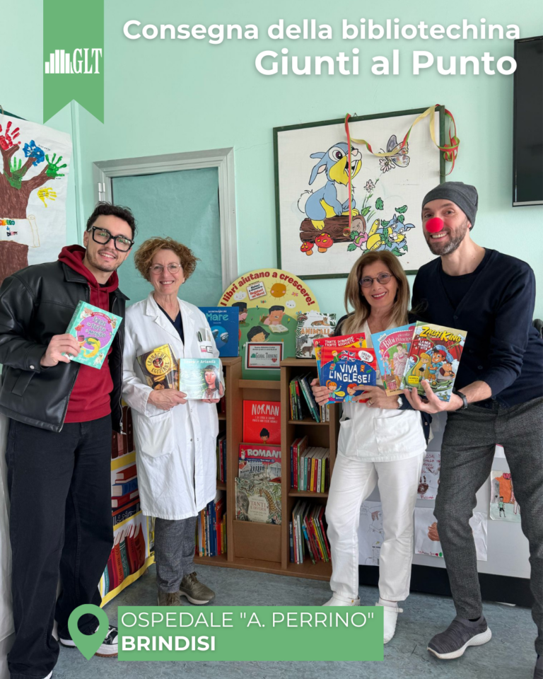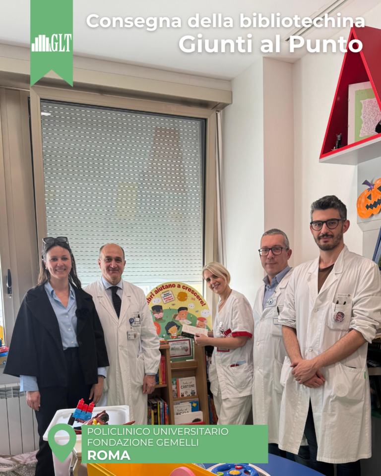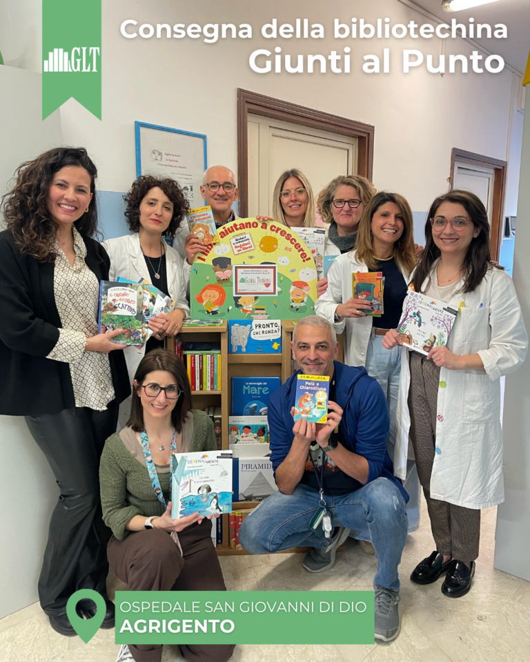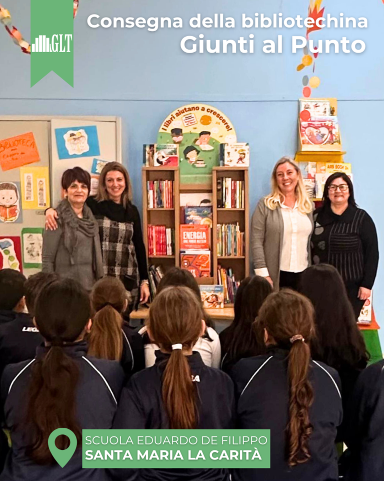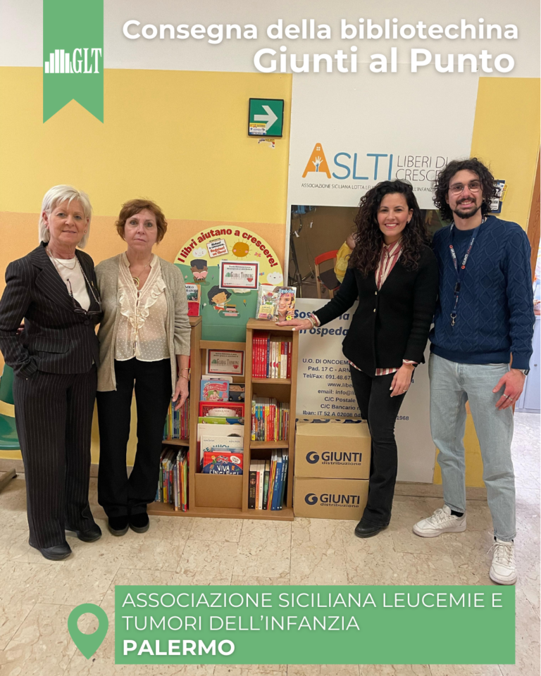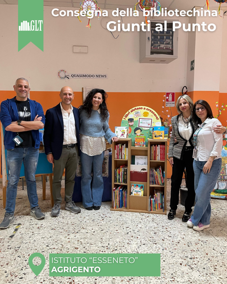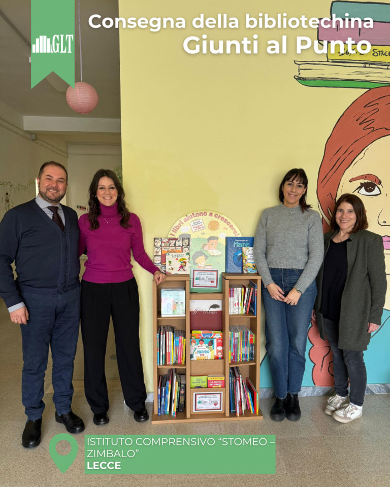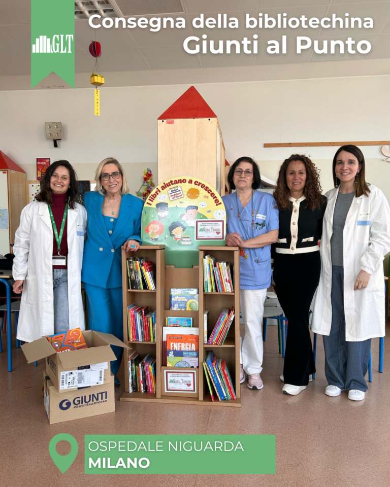 La prima delle 20 bibliotechine del progetto “Aiutaci a crescere, regalaci un libro” di GIUNTI al Punto, che Global Thinking Foundation supporta, è stata consegnata all’Istituto Comprensivo Statale “Giovanni XXIII – Moro” di Mesagne (BR), dall’Avv. Federica Montesardi, Coordinatrice Attività Sportelli GLT. Global Thinking Foundation ha contribuito a questa iniziativa che porta la lettura nelle scuole e nei reparti pediatrici degli ospedali, offrendo ai più piccoli nuove opportunità di crescita e conoscenza. Un momento speciale insieme a Salvatore Fiore, Prof. Dirigente Scolastico Istituto Comprensivo Statale “Giovanni XXIII- Moro” e alla Dott.ssa Anna Maria Scalera, Assessore Comune di Mesagne (Politiche Ambientali, Politiche Comunitarie, Rapporti Istituzionali, Cittadinanza Attiva e Partecipazione). Il progetto “Aiutaci a crescere, regalaci un libro” di GIUNTI al Punto, supportato da Global Thinking Foundation dona una bibliotechina all’ Associazione Siciliana Leucemie e Tumori dell’Infanzia. La consegna è avvenuta con la presenza di Martina Gangi, responsabile del progetto Focus Sud di Global Thinking Foundation, con la Direttrice dell’ASLTI Ilde Vulpetti, con la Dott.ssa Concetta Di Benedetto, Assistente Sociale Coordinatrice del Comune di Palermo e con il responsabile della sede “Giunti al Punto” di Palermo Centro, Luciano Napoli. Grazie alla donazione di Global Thinking Foundation della bibliotechina Giunti al Punto relativa al progetto “Aiutaci a crescere, regalaci un libro” è stato possibile ampliare la biblioteca dell’istituto Comprensivo “Galilei”. La consegna è avvenuta con la presenza di Nicoletta Guizzardi, Responsabile Segreteria Internazionale Global Thinking Foundation ETS, la Vicepreside Benedetta Rossi, la Professoressa Stefania Ramunno e la referente della Libreria Giunti al Punto di Rozzano, Daniela. Una nuova bibliotechina del progetto“Aiutaci a crescere, regalaci un libro” di GIUNTI al Punto, supportato da Global Thinking Foundation approda in una scuola di Treviso, la Scuola Elementare “Collodi”, tra l’entusiasmo e l’accoglienza dei bambini dell’istituto. Questa consegna è avvenuta con la presenza di Sabina Malagoli, Responsabile Eventi per Global Thinking Foundation, la Referente d’Istituto Maria Ingargiola, i docenti Marcon Silvia, Carrer Marilena, Ingargiola Maria e la Referente Giunti al Punto, Sara Bottari. La donazione della bibliotechina relativa al progetto “Aiutaci a crescere, regalaci un libro” di GIUNTI al Punto, all’interno della biblioteca scolastica della scuola primaria Carlo Collodi di Torino, ha contribuito ad arricchire lo spazio di lettura dedicato ai bambini. La consegna è avvenuta con la presenza di Arianna Sfondrini, Project Manager Comunicazione, Eventi & Social Management Global Thinking Foundation, la Dirigente Scolastica Antonella Loiotile, la Professoressa Antonella Gastone e i Referenti Giunti al Punto Francesca Baglioni e Alessandro Mendola. Grazie alla donazione di Global Thinking Foundation della bibliotechina Giunti al Punto relativa al progetto “Aiutaci a crescere, regalaci un libro” è stato possibile ampliare la biblioteca dell’Istituto Comprensivo “Giovanni Cena” di Torino. La consegna è avvenuta con la presenza di Claudia Piccinelli, Responsabile Progetto Donne al Quadrato Global Thinking Foundation, il Preside Luigi Piscopo e Cristina Miorin, Referente Giunti al Punto. La donazione della bibliotechina relativa al progetto “Aiutaci a crescere, regalaci un libro” di GIUNTI al Punto, all’interno dell’Ospedale “Vito Fazzi” di Lecce, ha contribuito ad arricchire lo spazio di lettura dedicato ai bambini in degenza. La consegna è avvenuta con la presenza della nostra Ambassador Carla Gloria, la Caposala Suor Alessandra Notaro, l’Infermiera Mina De Razza e la Referente Gunti al Punto Mara. Questa donazione ha fatto tappa in Campania, più precisamente nella scuola elementare Circolo Didattico “Eduardo De Filippo” di Santa Maria La Carità, in cui una nuova bibliotechina Giunti Al Punto, del progetto “Aiutaci a crescere, regalaci un libro” è stata installata per i bambini. La consegna è avvenuta con la presenza della nostra Volontaria Zaccaria Marnie e con le maestre Iolanda Visconti, Maria Carolina Sorrentino, Linda Nappi. Il progetto “Aiutaci a crescere, regalaci un libro” di GIUNTI al Punto, supportato da Global Thinking Foundation dona una bibliotechina al Policlinico Universitario Fondazione Gemelli di Roma per dare maggiore apporto alla già presente saletta dedicata ai giochi e alla lettura. La consegna è avvenuta con la presenza dall’Avv. Federica Montesardi Coordinatrice Attività Sportelli Global Thinking Foundation, il Primario dell’Ospedale, Professore Antonio Ruggiero, la Caposala Lucia Dario, i Dottori Attina’ e Talloa. I percorsi di degenza non sono mai semplici e sapere di avere un angolo di svago da dedicare alla lettura, può essere un supporto valido per trascorrere il tempo e dedicarsi un attimo di svago. Questa donazione è avvenuta nel reparto pediatrico dell’Ospedale di Ivrea (TO) La consegna della bibliotechina Giunti al Punto, relativa al progetto “Aiutaci a crescere, regalaci un libro” è avvenuta con la presenza di Elisabetta Priano, Responsabile Scuole e Didattica Goal 4 Global Thinking Foundation, la Dottoressa Marina Caldognetto e il Referente Giunti al punto Francesco Tappero Merlo. Il progetto “Aiutaci a crescere, regalaci un libro” di GIUNTI al Punto, supportato da Global Thinking Foundation, dona una bibliotechina e arricchisce lo spazio di lettura della scuola elementare “Armando Diaz” a Bari. La consegna è avvenuta con la presenza dall’Avv. Federica Montesardi, Coordinatrice Attività Sportelli Global Thinking Foundation, la Dirigente Scolastica Prof.ssa Olga Frate e Maestra Murgolo Sabina. Il progetto “Aiutaci a crescere, regalaci un libro” di GIUNTI al Punto, su